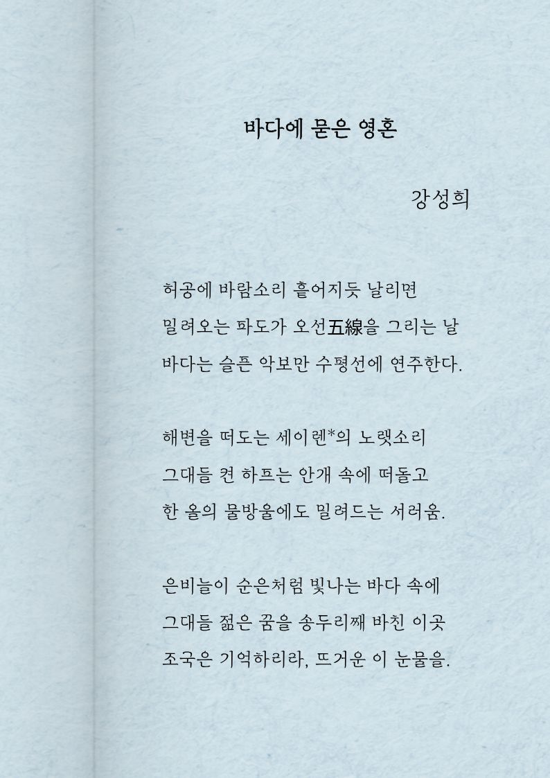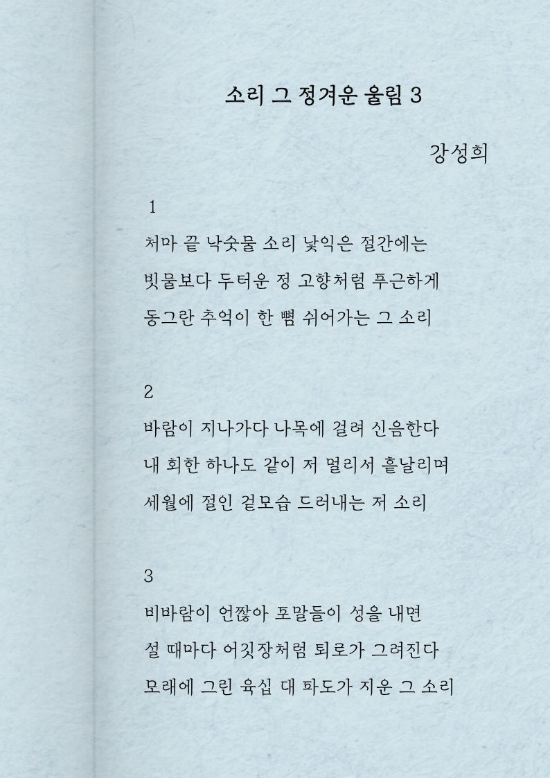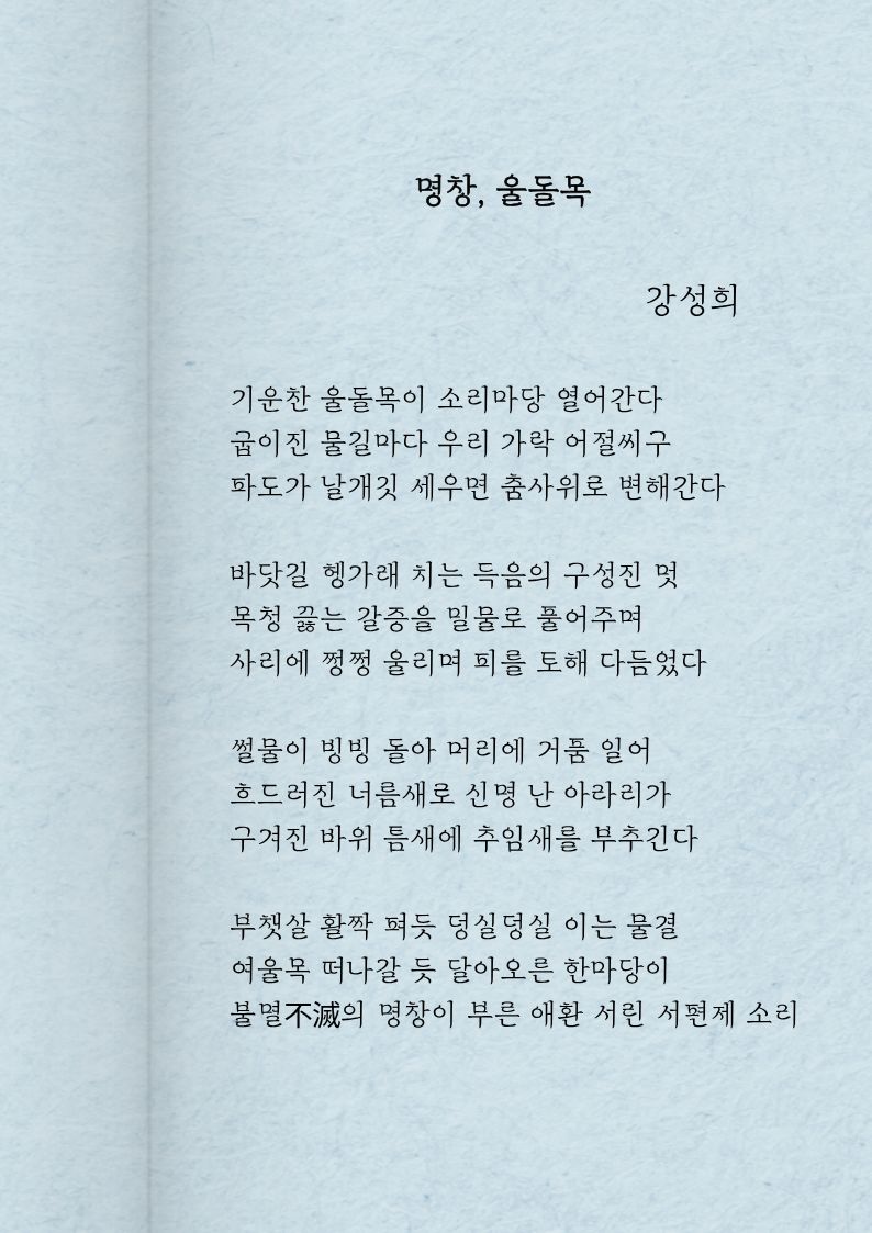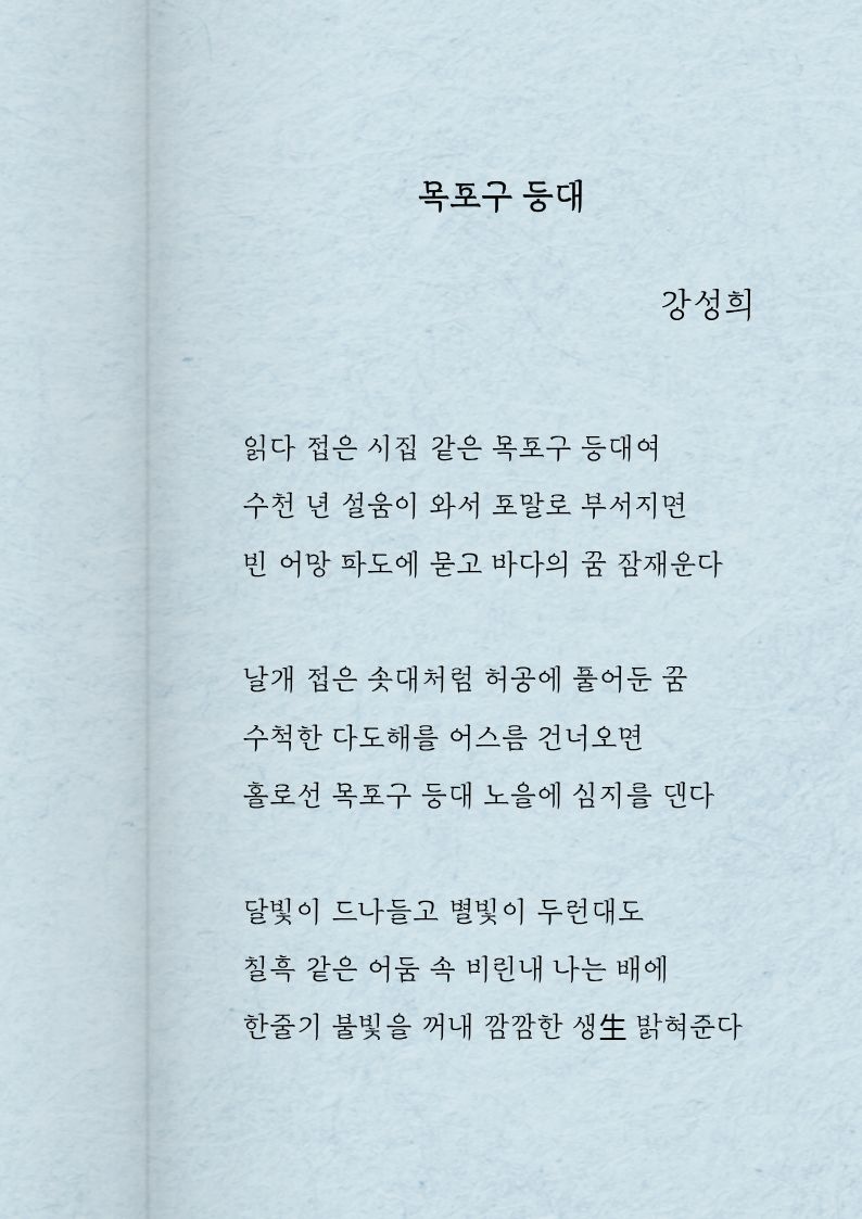 시집 『바다에 묻은 영혼』, 『명창, 울돌목』, 『소리, 그 정겨운 울림』등 3권을 출간하였습니다.